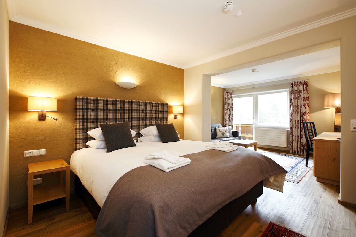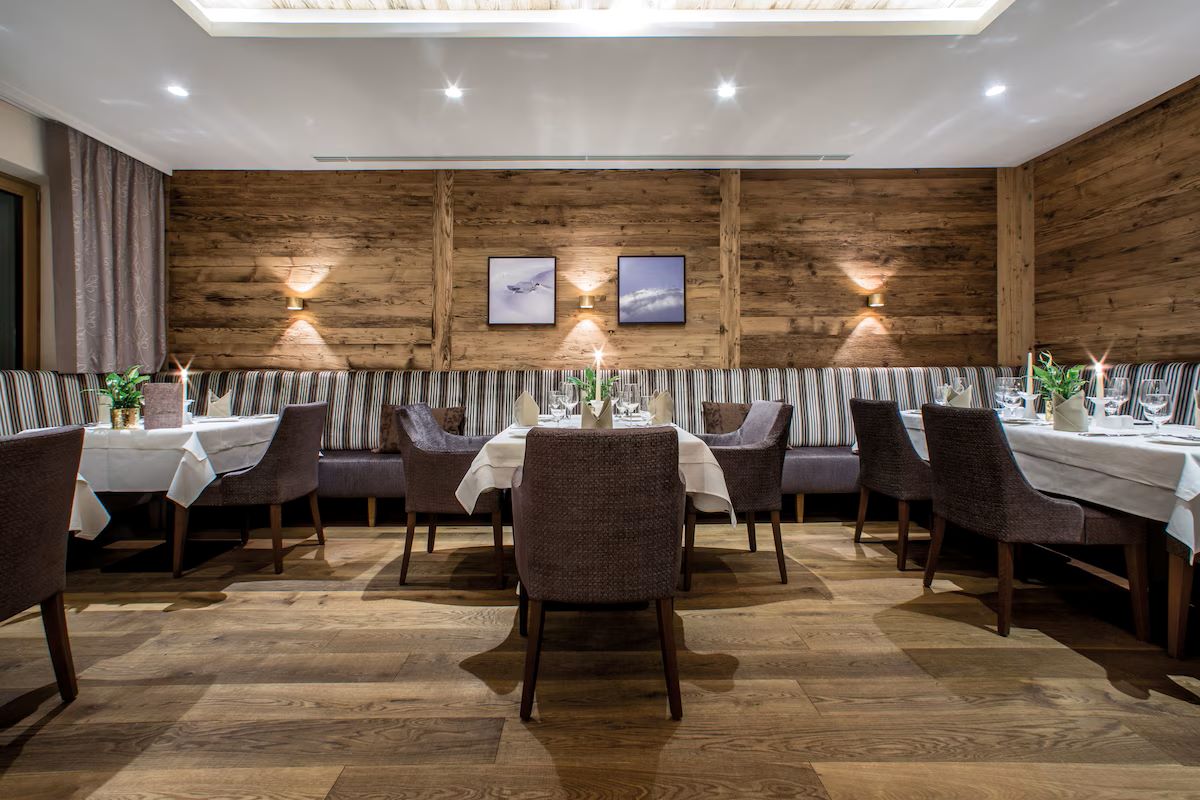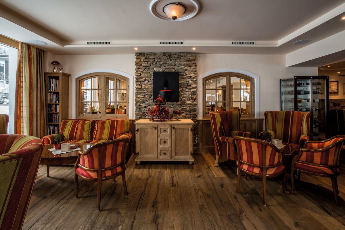Facilities at the hotel include an inviting wellness area with swimming pool, sauna, steam room and relaxation area, with massages and beauty treatments available at a fee. There’s also a small fitness room if you’re still in need of workout after skiing.
