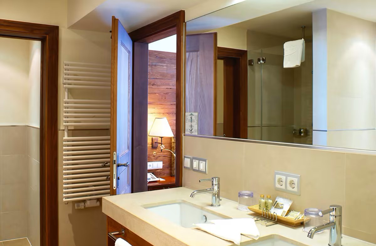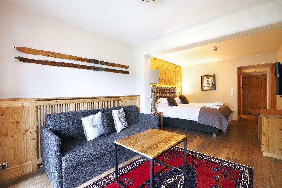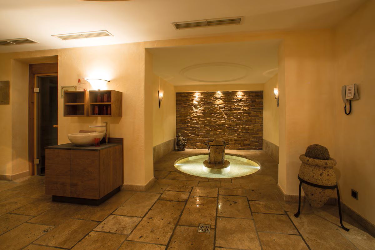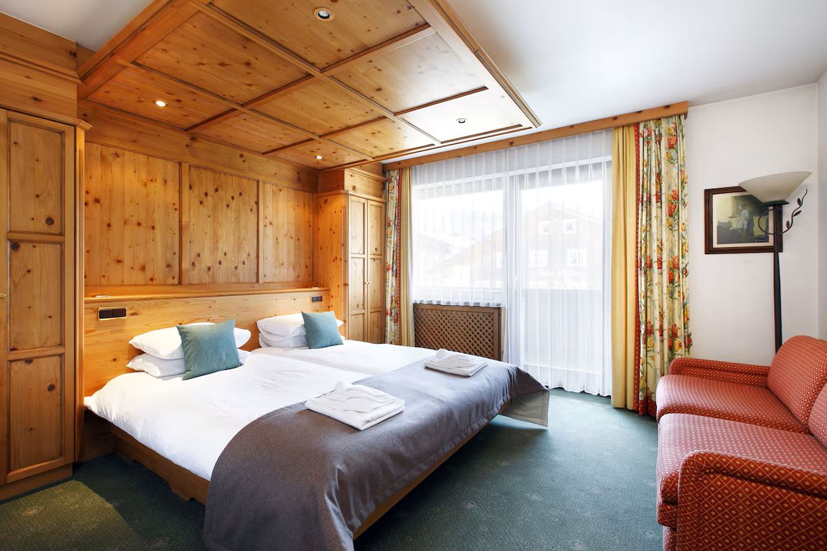 Facilities at the hotel include an inviting wellness area with swimming pool, sauna, steam room and relaxation area, with massages and beauty treatments available at a fee. There’s also a small fitness room if you’re still in need of workout after skiing.