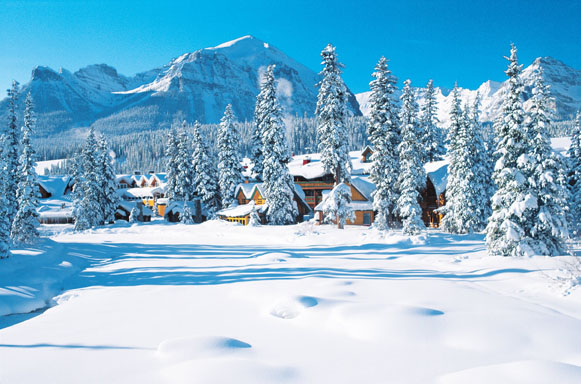 The ski shuttle for Lake Louise picks up just outside.