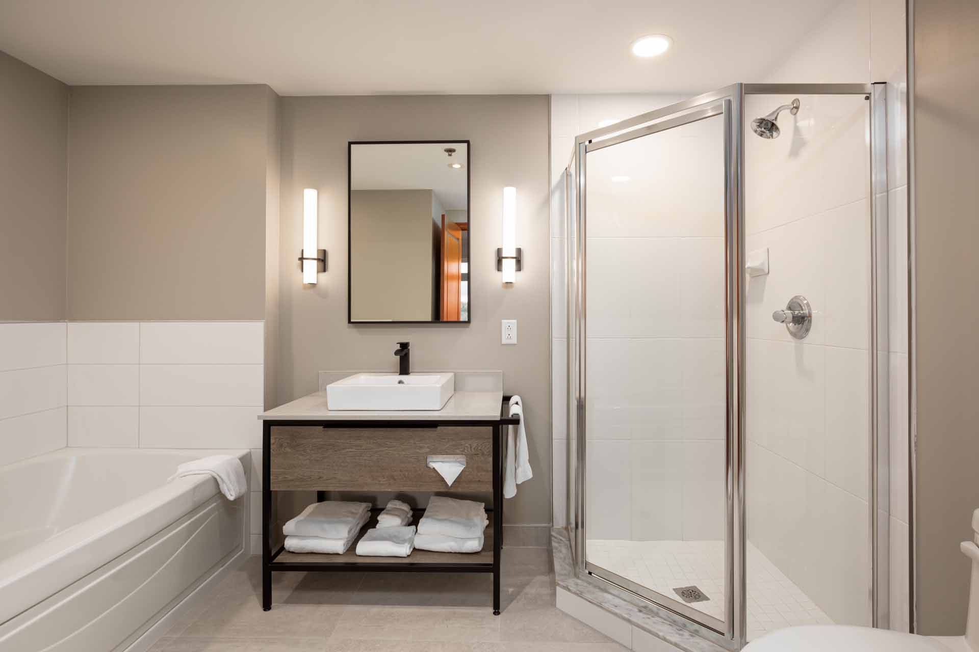 Relax in the outdoor hot tub and sauna before checking out one of the many delicious restaurants in the village.
