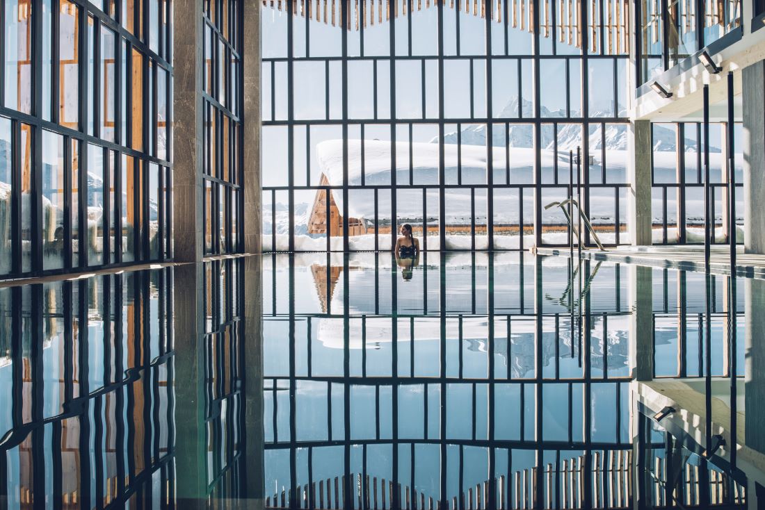 "The view from the Hotel Alparena’s swimming pool is really something special and the wellness facilities are very impressive. With amazing ski-in/ski-out access to the San Bernardo ski area, this is about as relaxing as a ski holiday gets!"