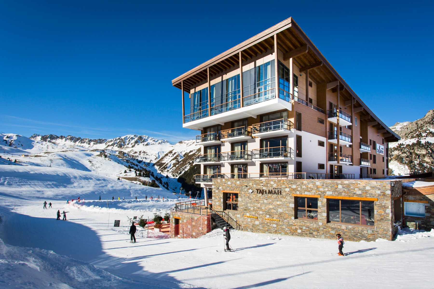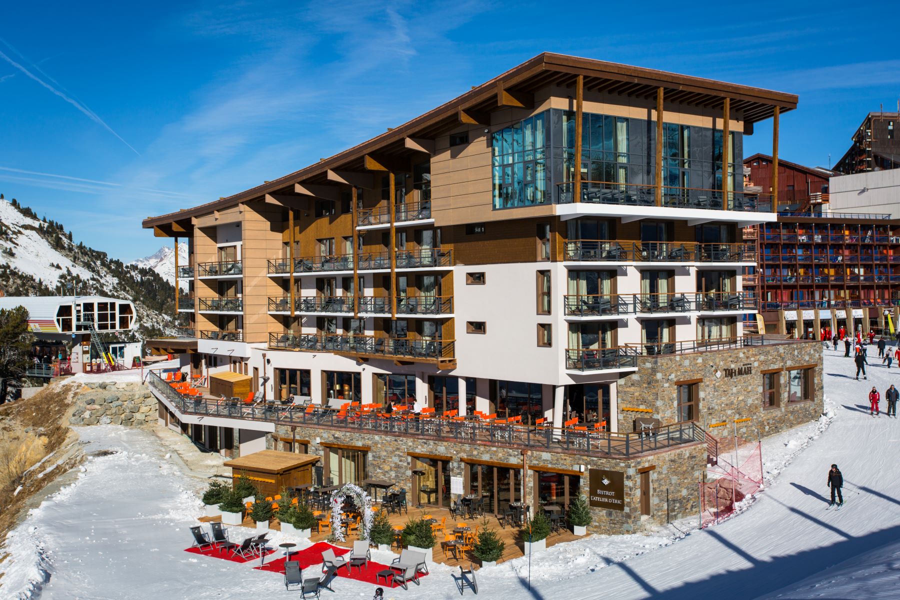 Located at the top of the Cabriolet gondola, the 5-star Hotel Taj-I Mah boasts an outstanding ski-in/ski-out position in Les Arcs 2000 offering access to the Paradiski ski area.
