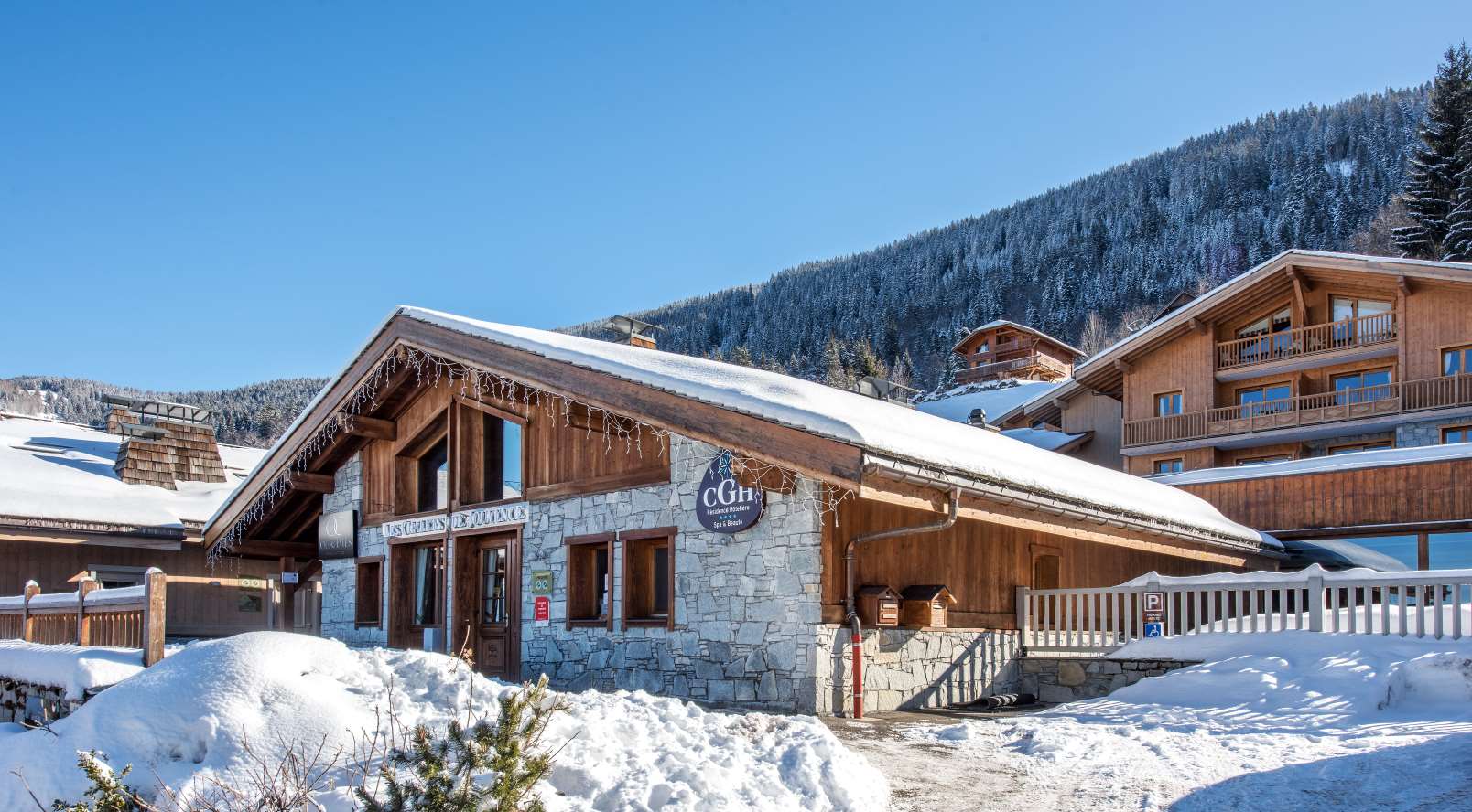 Built in a traditional Savoyard style, this charming residence enjoys an ideal location at the foot of the main Kedeuze gondola and a ten minute walk (400m) from the centre of Les Carroz. The popular residence offers spacious apartments with excellent facilities including an indoor swimming pool, Jacuzzi, sauna, steam room, fitness room and spa centre offering treatments (at a fee).