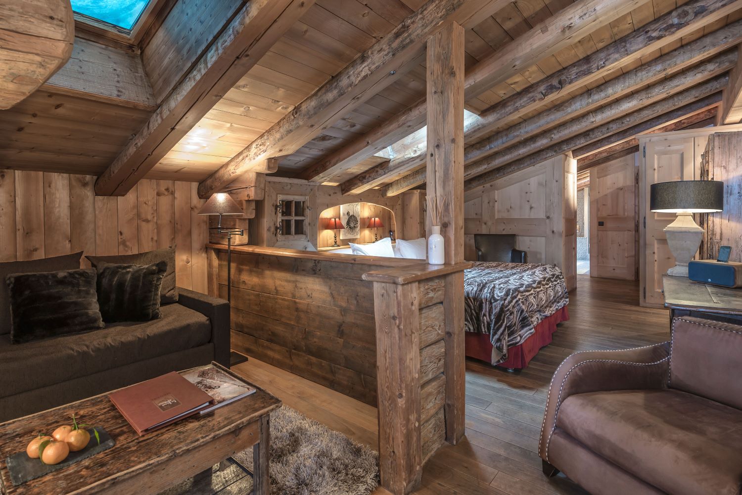 Located 700m from the centre of Megève, this chic and rustic hotel is made up of 9 chalet-style lodges made from locally reclaimed timber set in 3 acres of grounds. Each room has its own unique style with traditional and often local materials such as wood, stone and wool predominating.