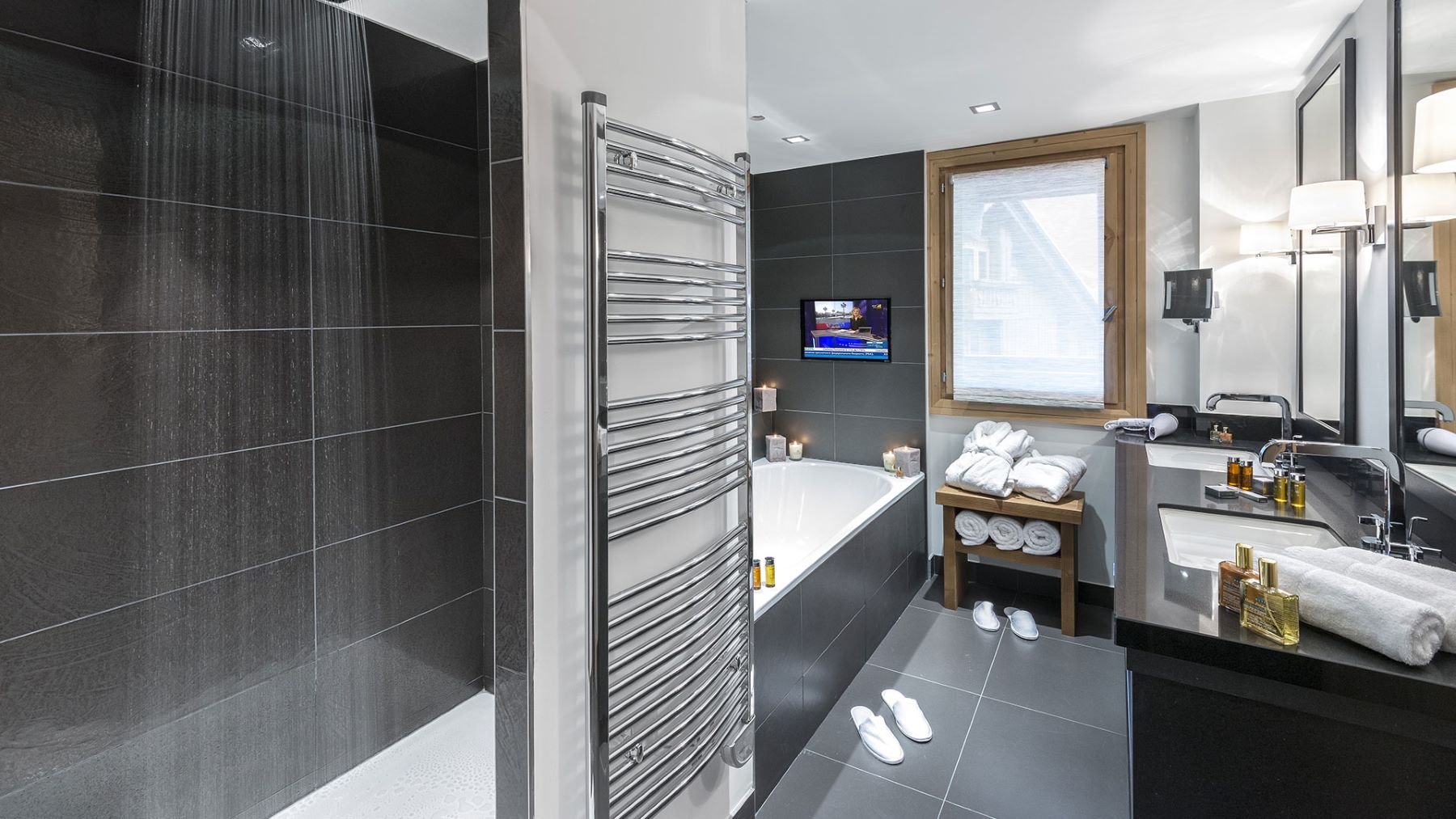 The facilities at the Hotel Le Kaila include the Michelin-starred Restaurant l'Ekrin which offers guests an intimate, modern dining experience. There is also a lounge bar, a ski shop with private lift to the slopes, fitness room and beautiful Nuxe Spa with swimming pool. You're sure to be completely pampered at this fantastic 5-star property.