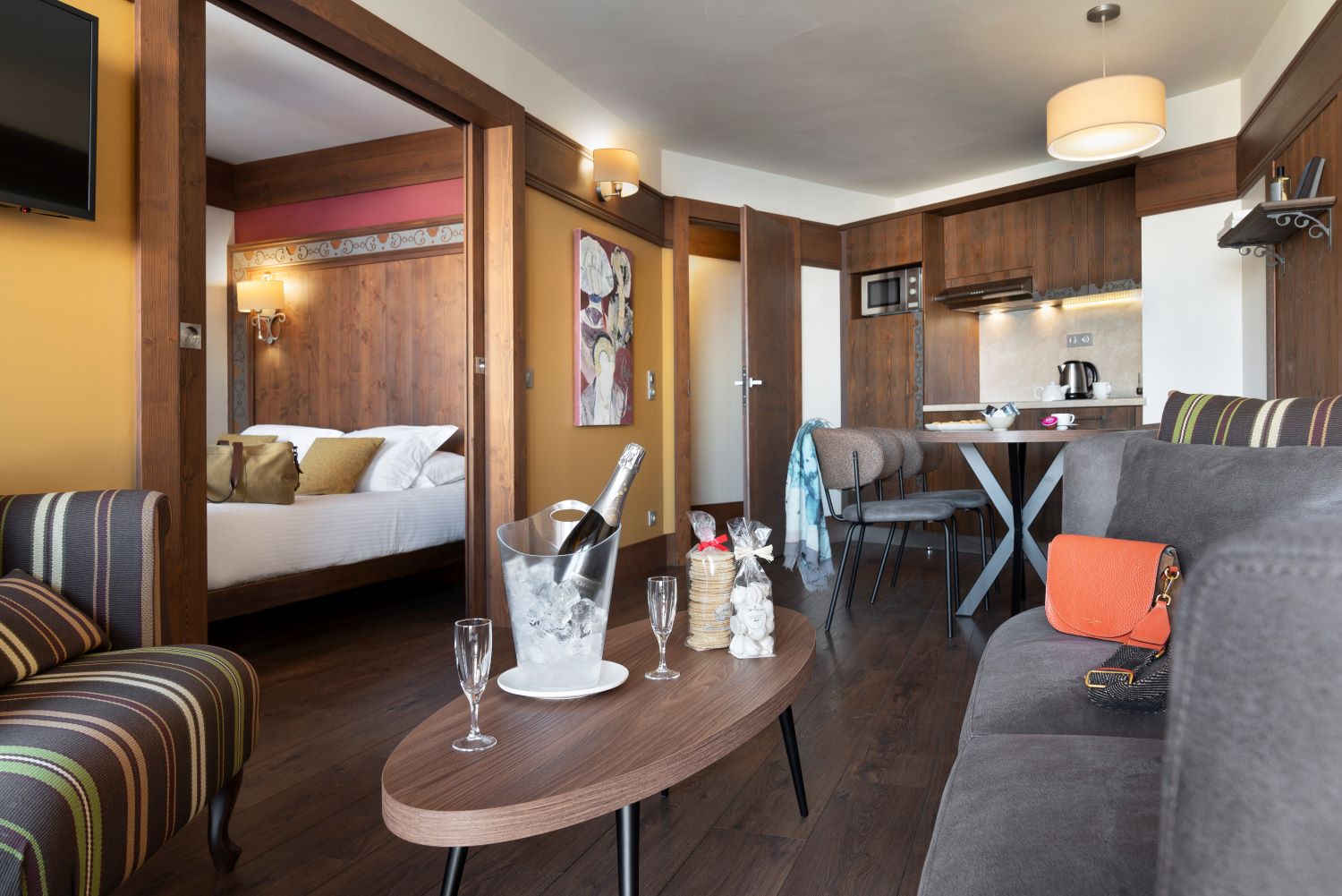 Occupying a sunny position at the entrance of Val Thorens, this hotel boasts stunning panoramic views and direct access to the pistes (via the blue Plein Sud piste).