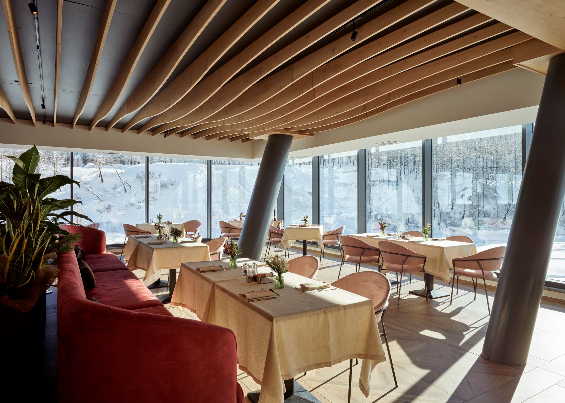 At an altitude of 2050m, this modern hotel offers panoramic views that won’t disappoint. The floor to ceiling windows of the Panorama Restaurant offer glimpses of the Matterhorn and here you’ll find traditional Italian cuisine with an international twist. For something cosier, the Abrì Restaurant specialises in typical local dishes from the Aosta Valley. Top it all off with a drink at the elegant Zero lounge bar where you’ll find an impressive cocktail menu and superb views.