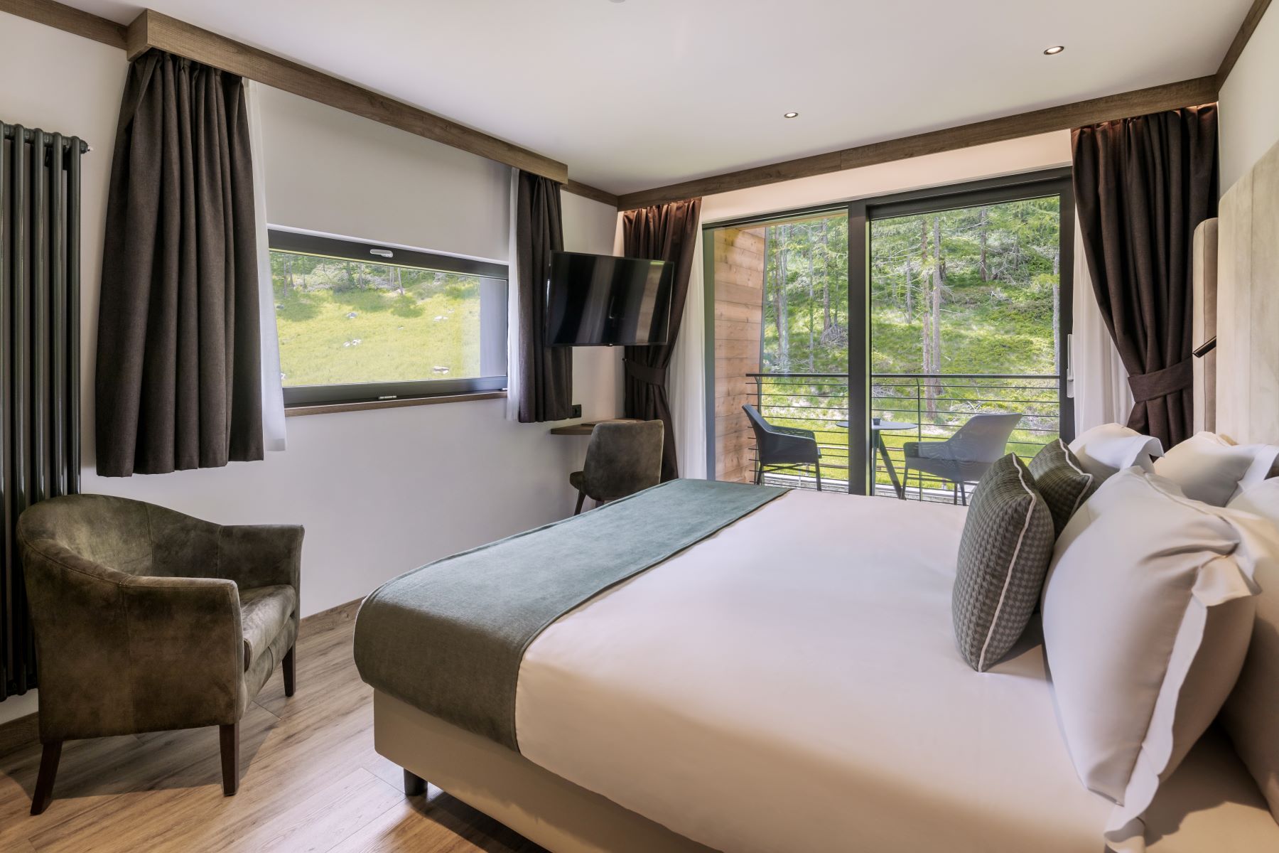 Those in search of relaxation will enjoy the spa area which includes a swimming pool with panoramic view. There’s also a steam room, saunas and fitness room plus an extensive choice of beauty treatments available. Skiers will love the on-site ski rental shop which makes getting kitted out so straightforward.