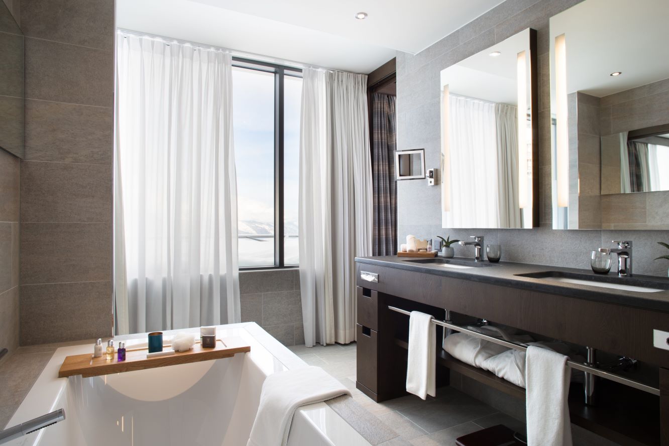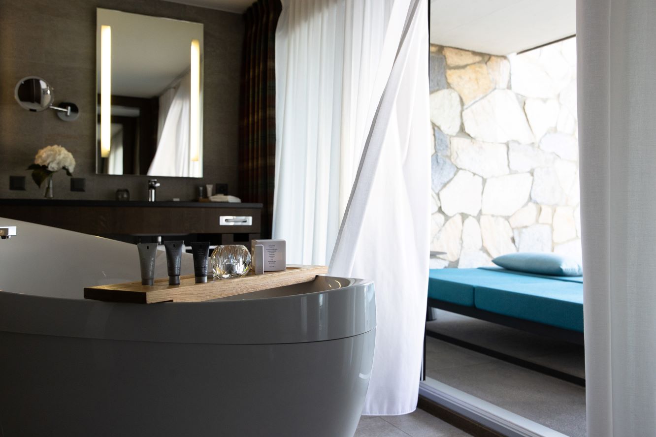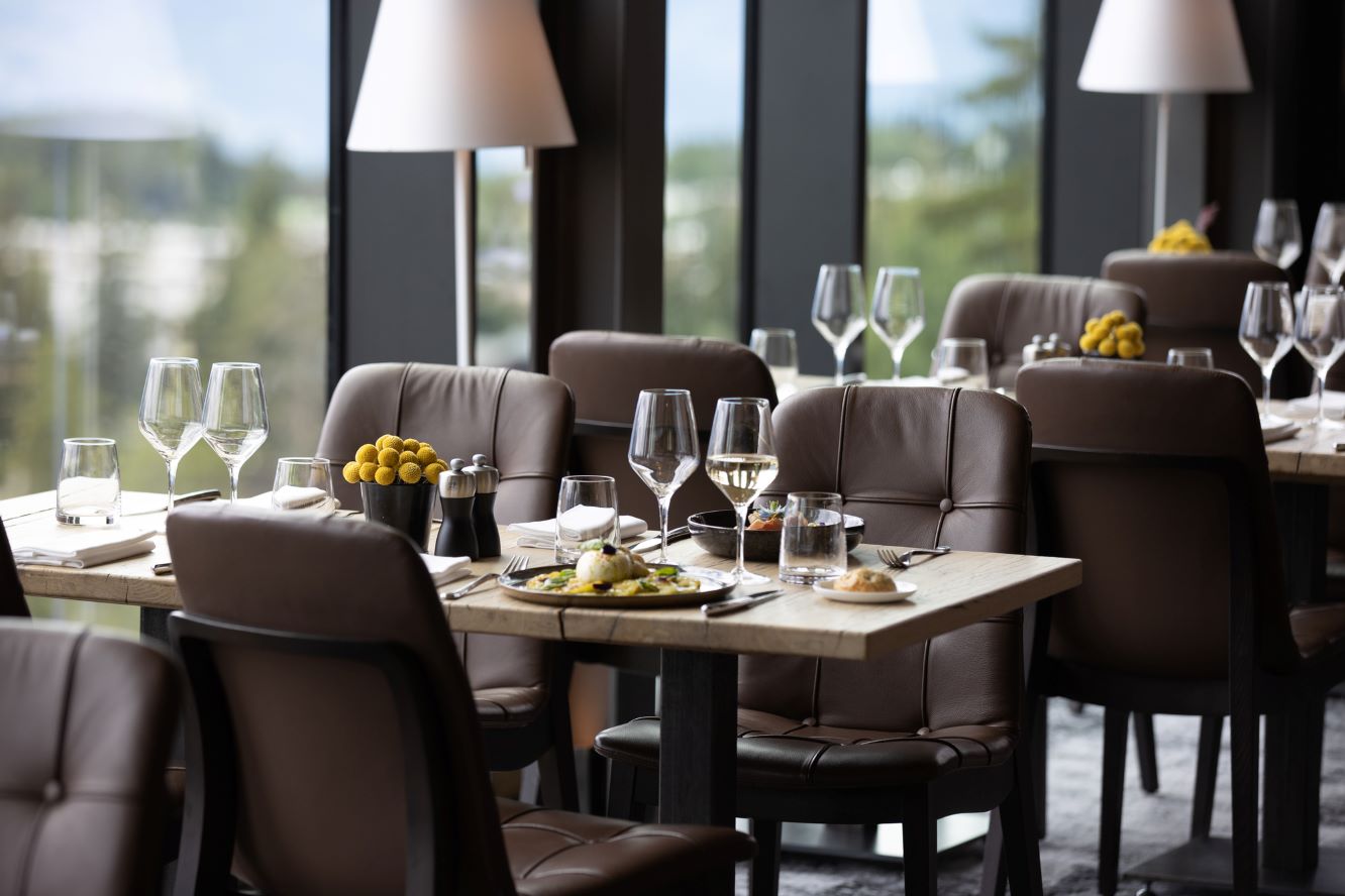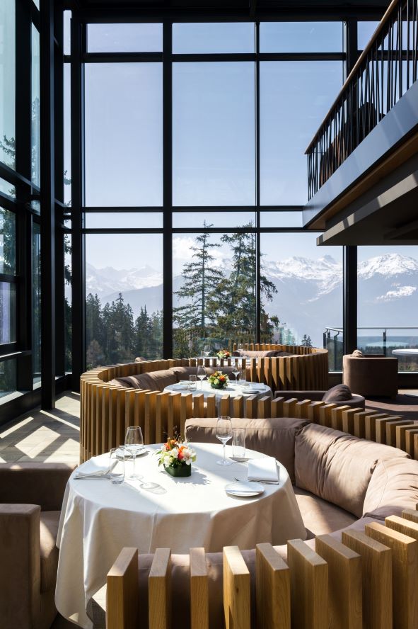 As you enter the hotel your eyes will immediately be drawn to the spectacular terrace which offers some of the finest views you’ll find anywhere in the Alps. The hotel also boasts a Japanese-Peruvian fusion restaurant, typical mountain chalet-style Le Carnotzet serving Swiss classics like fondue and raclette and a delightful lounge bar and restaurant where you can sit by the fire with a delicious cocktail.