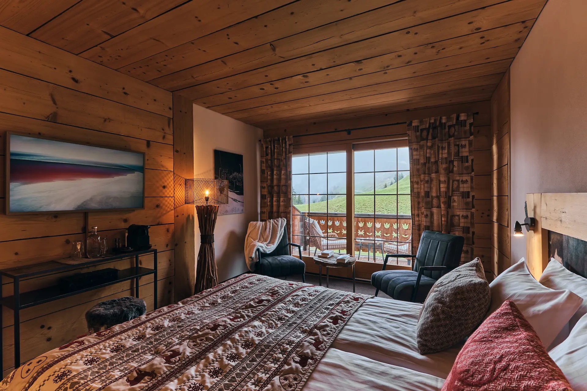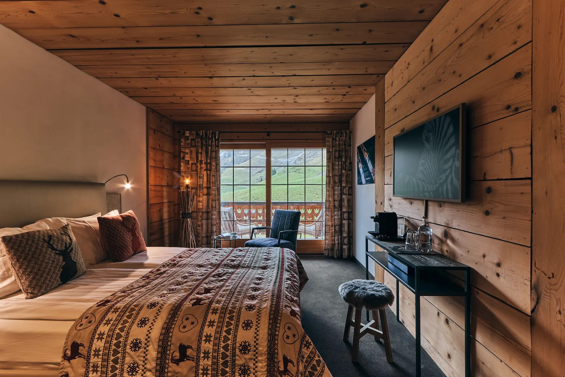 The hotel itself is delightfully cosy with typically Swiss design, making it a true mountain retreat. With just 17 rooms, it’s a small hotel offering a personal service. There’s a lovely in-house bar and restaurant, the J-Steakhouse, which specialises in delicious steaks.