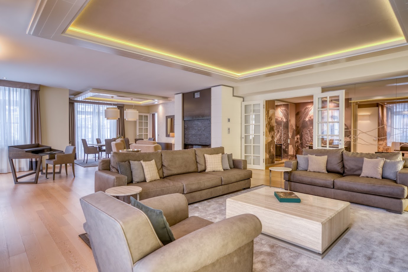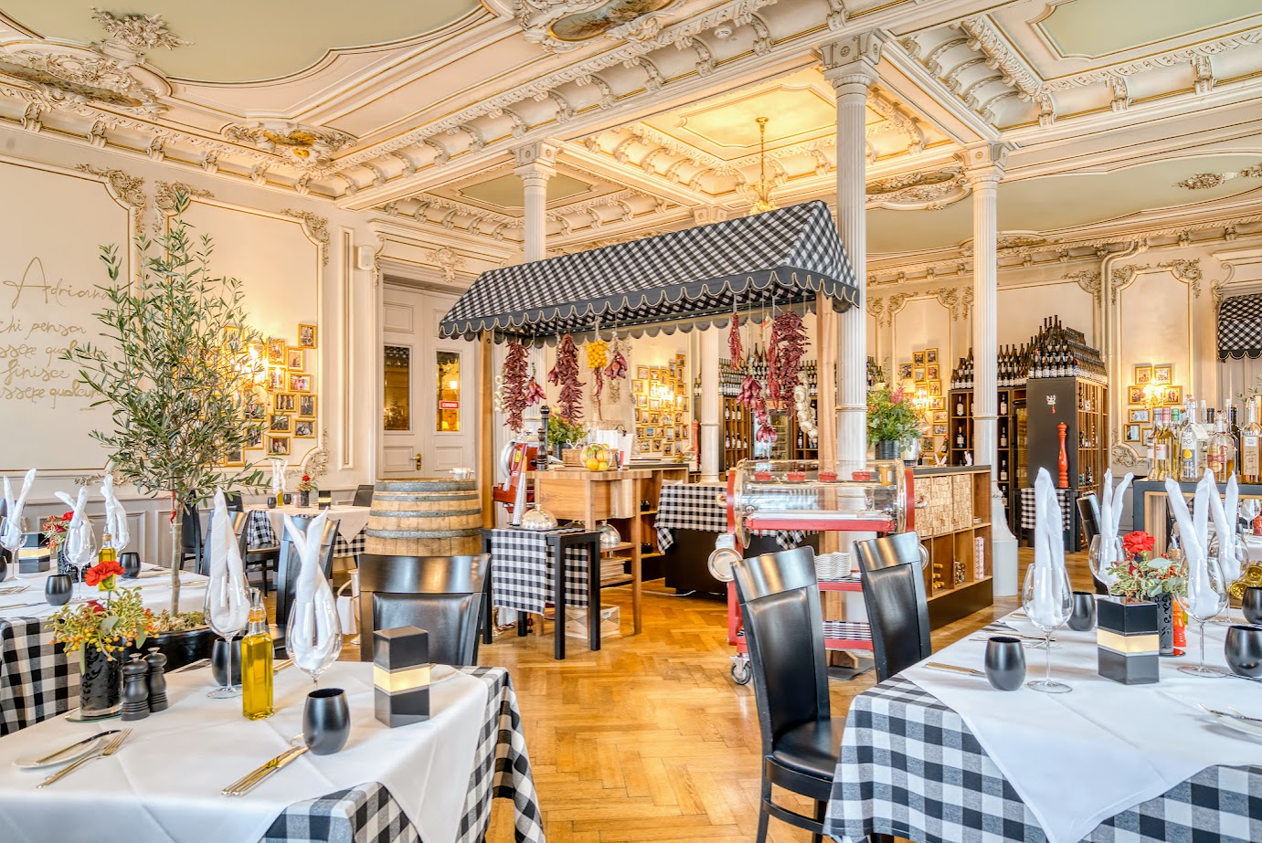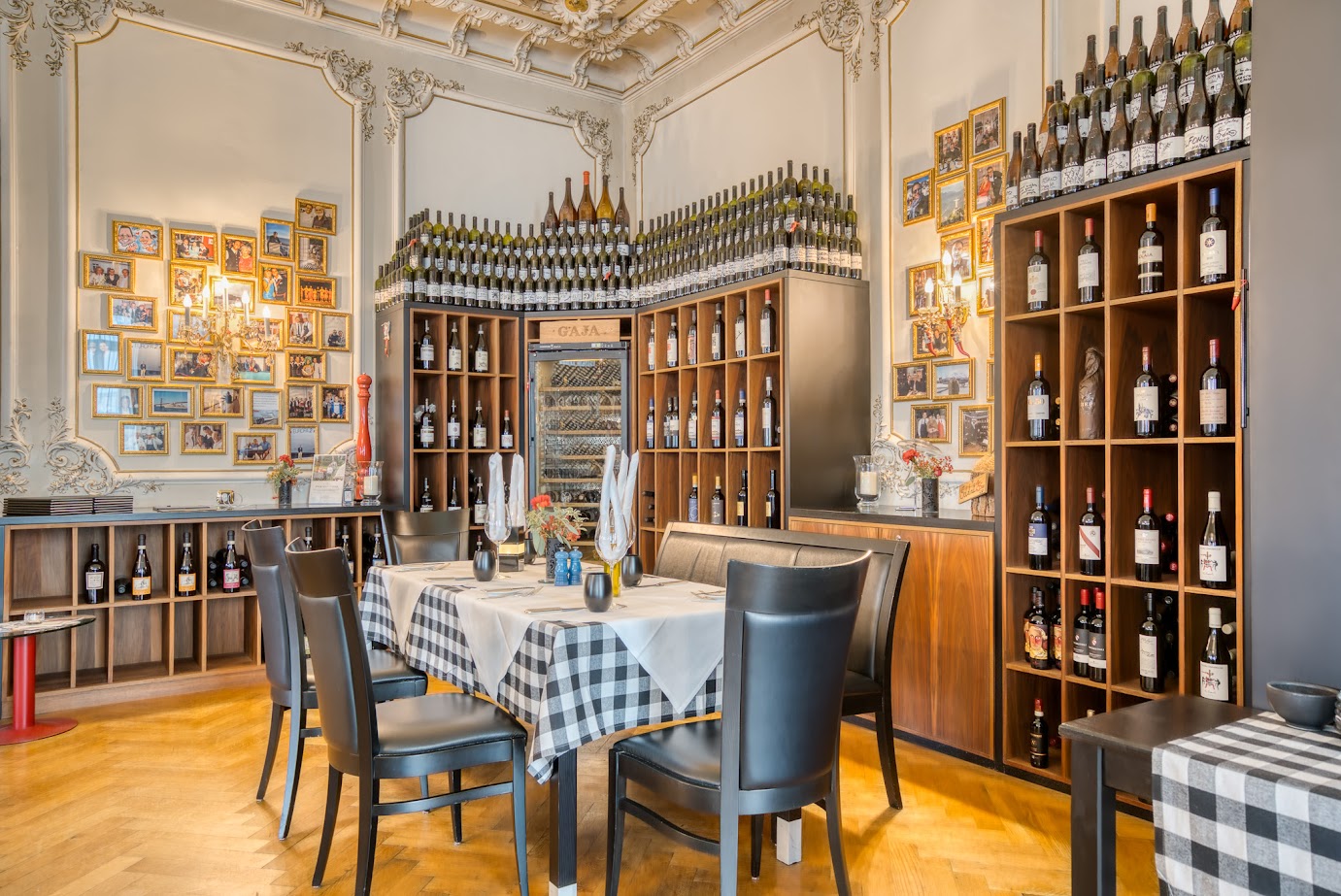 The hotel boasts its very own ski shop, ski school and kids club, in addition to the luxurious wellness area with pool, extensive sauna area, steam room and gym. You will also find a range of beauty therapies and massages available should you wish to pamper yourself. Enjoy pre-dinner drinks in the soothing hotel bar before sampling the variety of gastronomic delights of the award-winning hotel restaurants, including the gourmet restaurant Cà d'Oro.