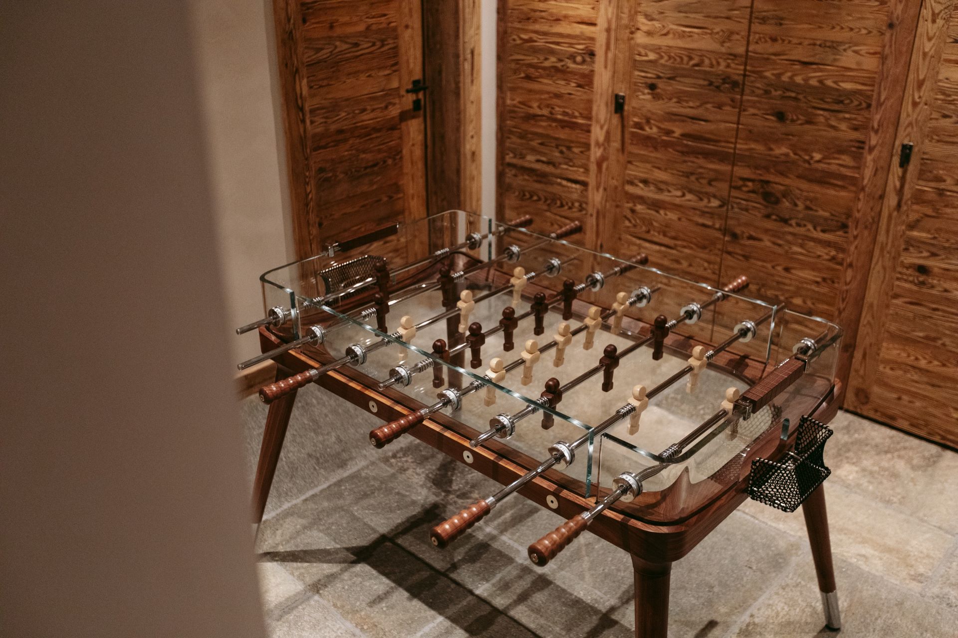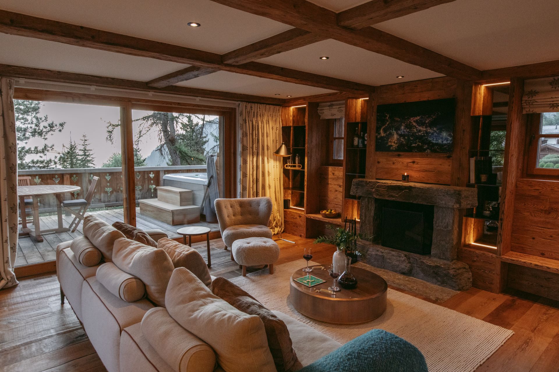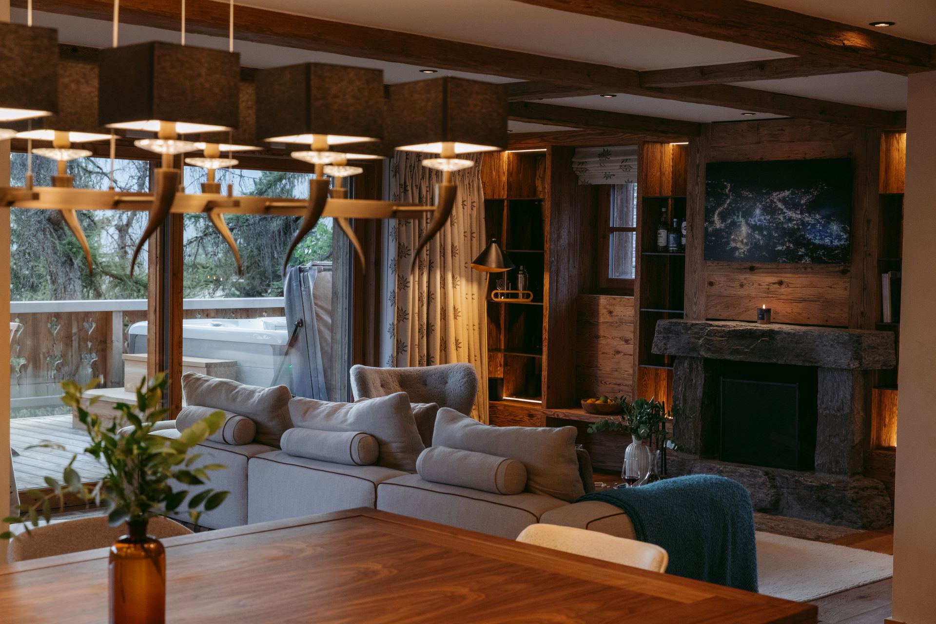 Spread over 3 floors and with 3 bedrooms and 3 bathrooms, this modern chalet can comfortably accommodate up to 6 people. The open-plan living area is located on the first floor and features floor-to-ceiling windows offering impressive panoramas. There’s also a cosy fireplace, a hot tub on the balcony and a dining table that converts into a pool table so it’s the ideal sport for spending time together. On the ground floor there’s a garage, ski room and even table football.