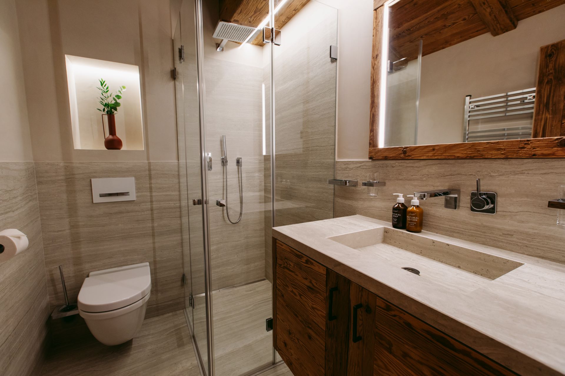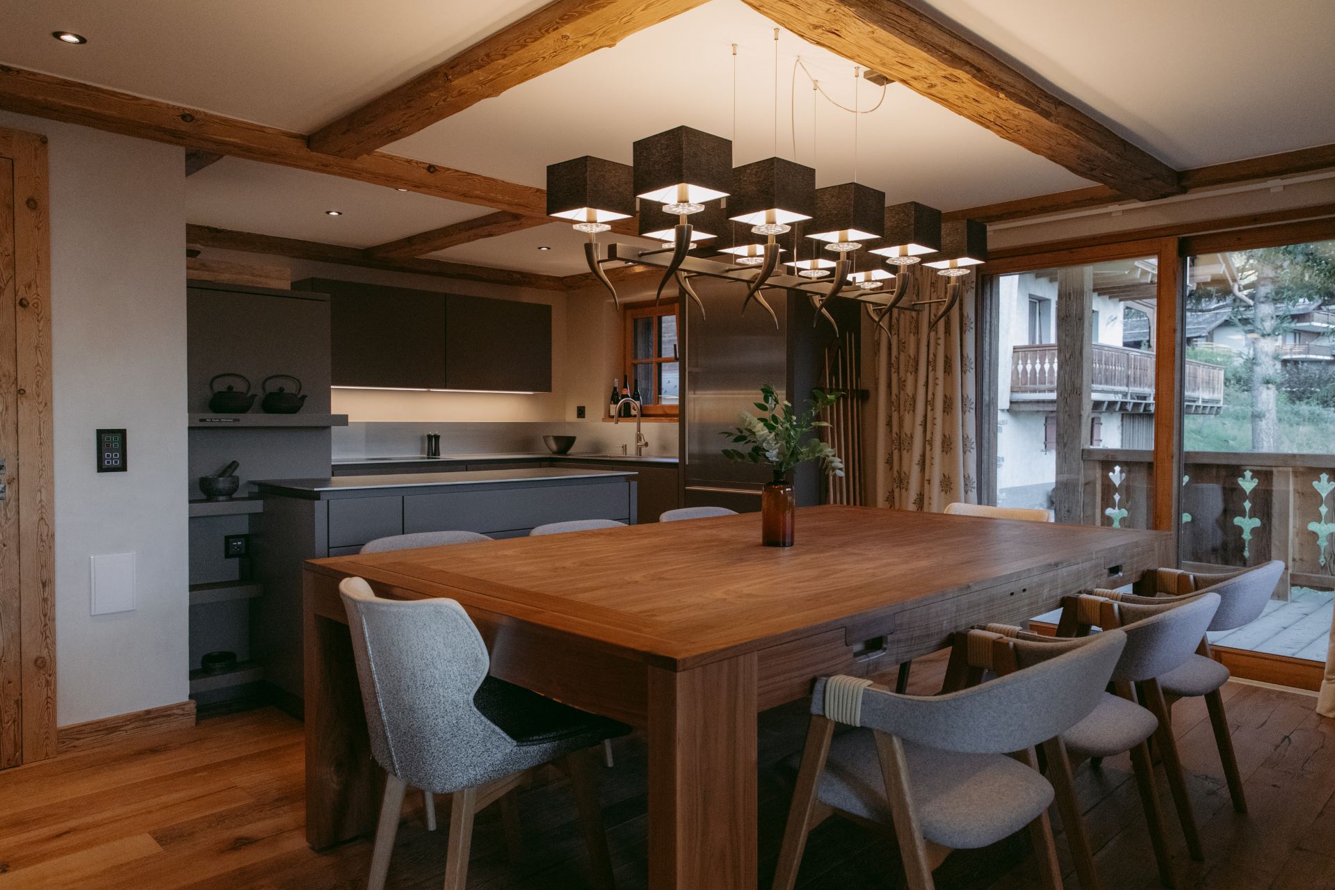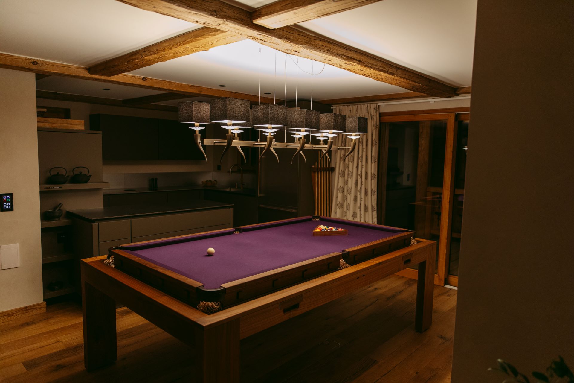 Spread over 3 floors and with 3 bedrooms and 3 bathrooms, this modern chalet can comfortably accommodate up to 6 people. The open-plan living area is located on the first floor and features floor-to-ceiling windows offering impressive panoramas. There’s also a cosy fireplace, a hot tub on the balcony and a dining table that converts into a pool table so it’s the ideal sport for spending time together. On the ground floor there’s a garage, ski room and even table football.