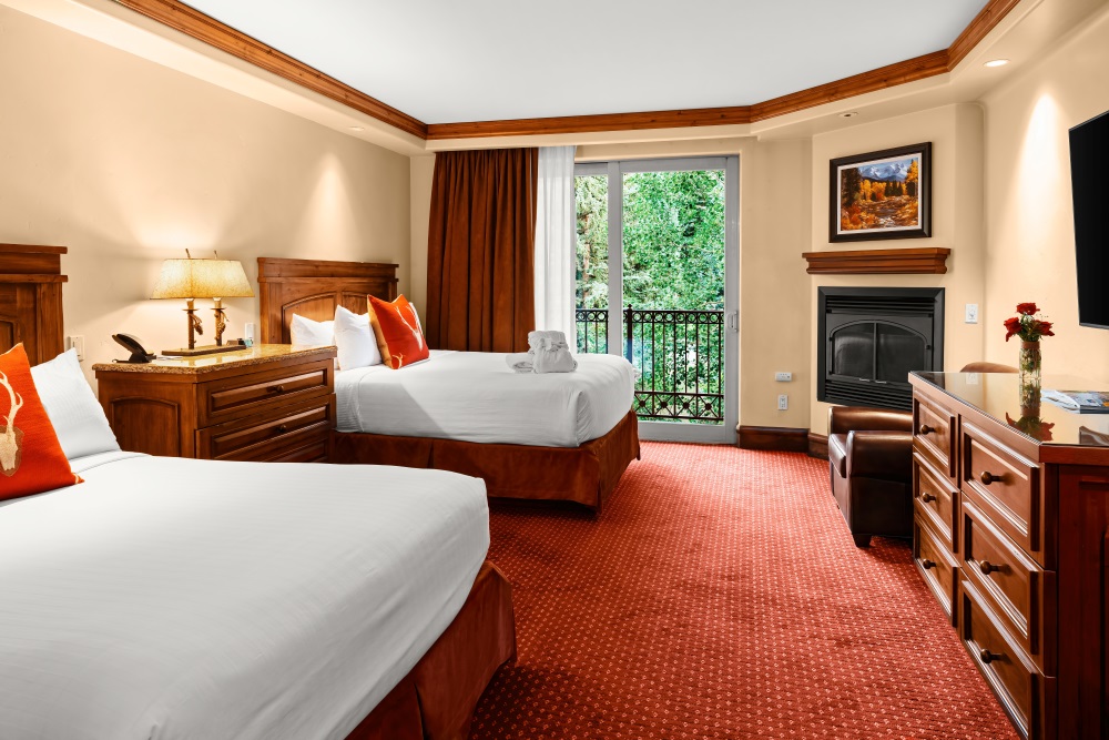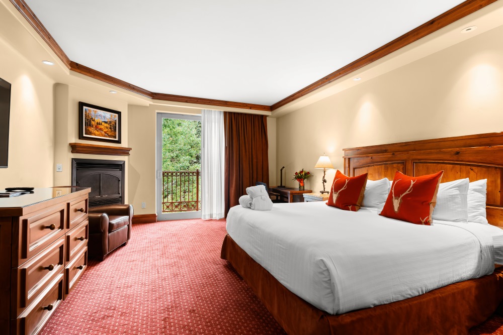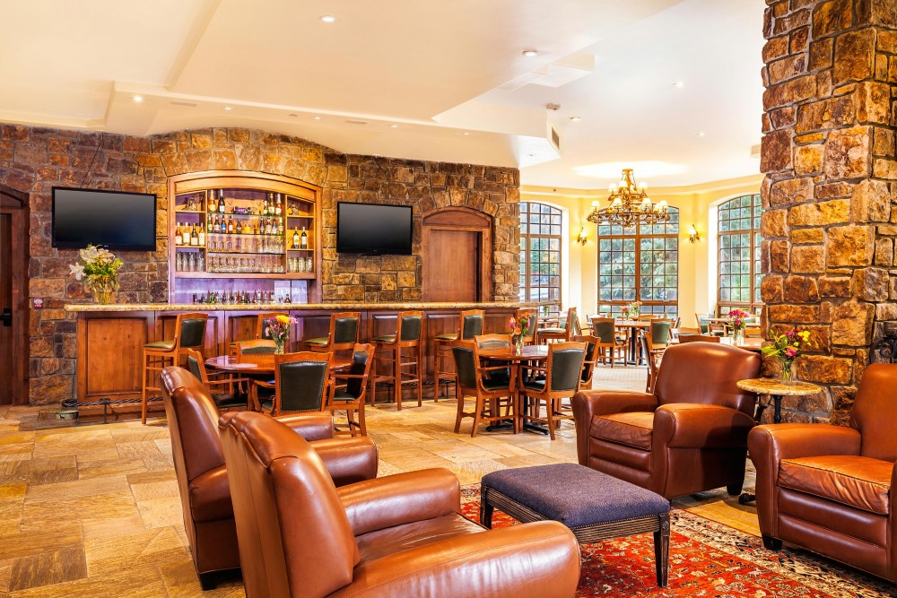 The spacious lobby offers stunning mountain views and is reminiscent of a lodge-style living room with oversized chairs, leather sofas, floor-to-ceiling stone fireplace and bar. Expect a warm welcome from the hotel's resident mascot, Racer the Chocolate Labrador!